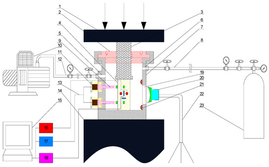 The experiment was conducted in the Faraday shielded room in China University of Mining and Technology. It could effectively prevent the electric noise from affecting the recorded signals [15]. The experimental system was designed and established individually to acquire multiple types of information during loading process of the gas-bearing coal (see Figure 1). The subsystem parts are shown as follows.