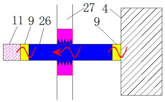 Schematic diagram of AE signal from waveguide wave. 11—AE sensor; 9—coupling agent; 26—waveguide rod; 27—chamber wall; 4—specimen.
