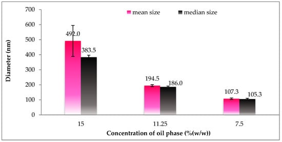 3.4. Effects of Total Oil Phase Content on Nanoparticle Size