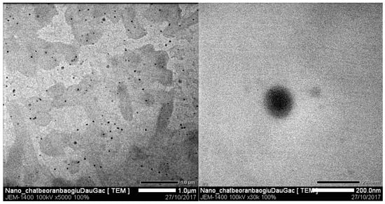 Transmission electron microscopy (TEM) images of gac oil-loaded SLNs.