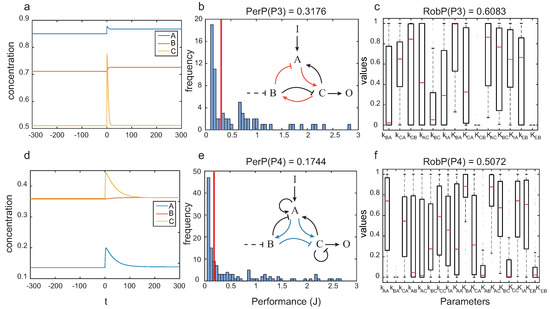 In the next section, we illustrate the performance of this method to identify enzyme network topologies capable of achieving adaptation that optimally trade-off performance and robustness against perturbations in the parameters.