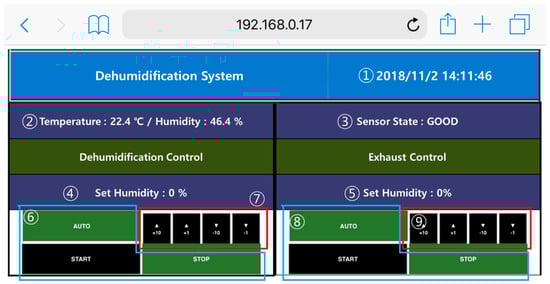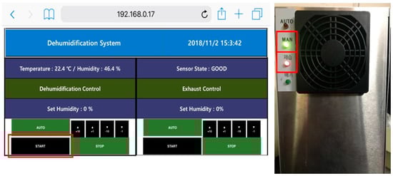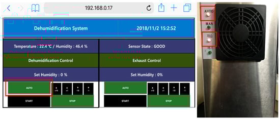 Figure 8, Figure 9 and Figure 10, respectively show the changing of the dehumidifier operating state according to set a web page for remote control.