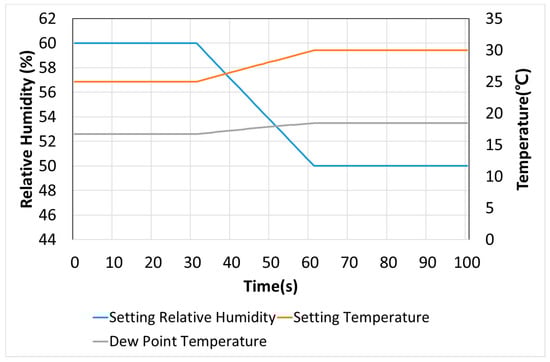 The condition of Table 6 is a constant indoor environment. To analyze changing environments, Figure 17 shows an indoor environment condition where the dew point temperature is increasing according to decreasing relative humidity caused by indoor temperature increasing.