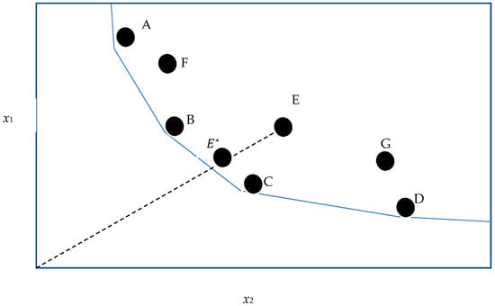 - Banker, R.D. Estimating Most Productive Scale Size Using Data Envelopment Analysis. Eur. J. Oper. Res. 1984, 17, 35–44. [Google Scholar] [CrossRef]