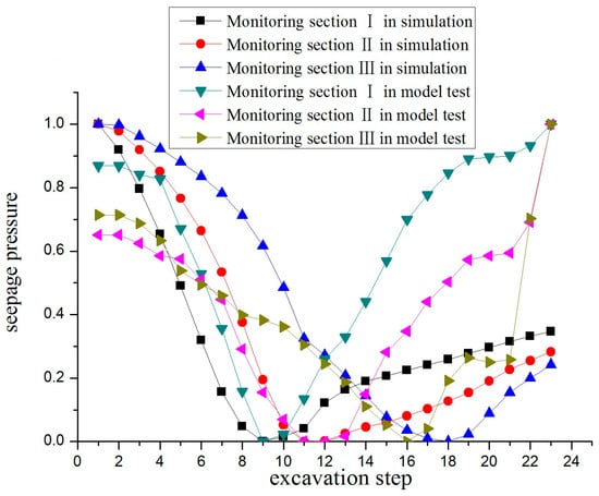 Variations of seepage pressure during the excavation process.