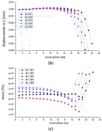 Variations in displacement during excavation process.