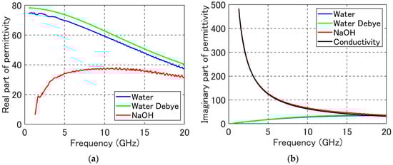 - Kaatze, U. Complex permittivity of water as a function of frequency and temperature. J. Chem. Eng. Data 1989, 34, 371–374. [Google Scholar] [CrossRef]