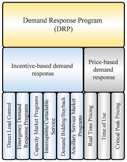 The DR programs are classified into two major categories and several subcategories, as shown in Figure 1 [8].
