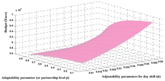 Changes in the budget for different values of adaptability and adjustability parameters.