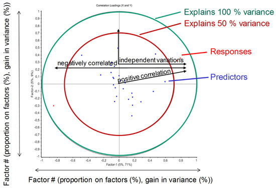 Schematic presentation of a loadings plot resulting from a partial least squares (PLS) regression.