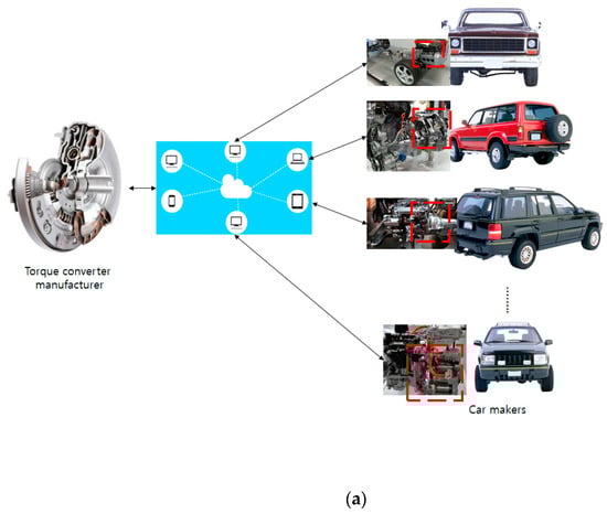 To provide an explicit example with the mentioned architecture, a part of supply chain network producing a key component in automotive manufacturing industries is supposed. A general vehicle is manufactured using several key components. A torque converter [] is one of main components in a car. A torque converter is a key module of a powertrain system in a car. While a powertrain has roles of delivering torque of engine to the four driving wheels, a torque converter controls torque power precisely using fluid coupling mechanisms. The manufacturing of high-quality torque converter and its supplies influence heavily on the accurate car control. While most car makers produce several powertrain modules and their vehicles in their own manufacturing facilities, the torque converter modules are supplied in general. The mold-based processes and irregular specifications result in the supply of the torque converter modules. As the qualities of the module is important for accurate vehicle controls, the fine torque converter manufacturer is considered as an important manufacturing partner for a successful vehicle industry. For this reason, several car producers have contracted with the best torque converter manufacturer. Then, the cloud computing and its environment is constructed for managing a real-time processes and qualities.