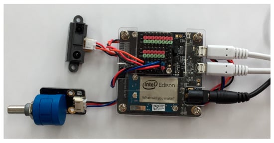 Table 2 provides the detailed specifications of the developed IoT device. The dimensional tolerances are detected using the embedded proximity sensors and it is attached on the processing machine shown in Figure 5b.