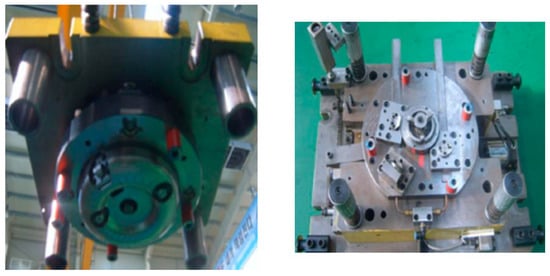 As provided in the previous section, the main quality issues result from the problems in the press injection machine. Figure 7 shows an upper part and a lower part of the press injection mold module in the machine. Its wear, wrong setup and oscillations cause the main defects of the torque converter module.
