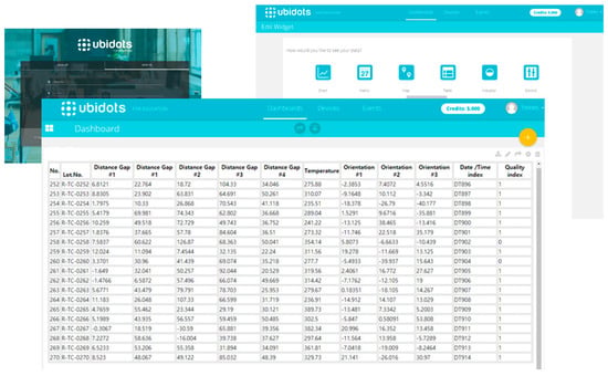 To check its processing status in real-time, the IoT device shown in Figure 6 is embedded on the machine. As provided in Table 2, it has a Wi-Fi chip supporting IEEE 802.11n-based MQTT protocol []. The real-time sensor signals are transmitted to the constructed cloud sever. This research used Ubidots © platform [] as a cloud sever. Several research studies [,] use the platform for sharing data using a cloud environment. Table 3 shows the collected and shared data using the cloud system.