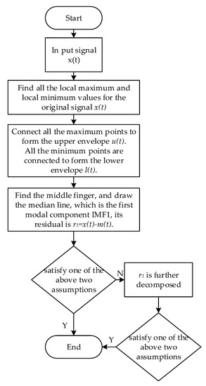 EMD is an adaptive signal processing technique suitable for non-linear and non-stationary processes [23]. In 1998, Huang et al. [24] proposed the empirical mode decomposition technology, which has been widely used in biomedicine [25,26], speech recognition [27], system modeling [28,29,30], and process control [31,32]. Based on the time scales, EMD local features, such as local maxima, local minima, and zero-crossings, decompose the signal into several IMFs and a residual, the IMFs are orthogonal to each other. Modal decomposition is determined by the signal itself.