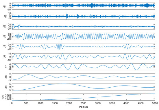 Mold-level data EMD results. di is the i-th IMF, the unit of di is mm, n is the number of Point, res is residual.