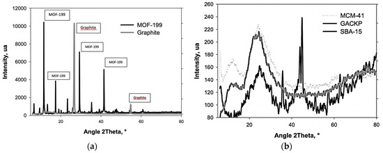 (a) XRD of MOF-199 and Graphite; (b) XRD of MCM-41, SBA-15 and GACKP.