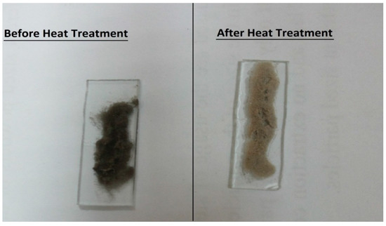 The samples were permitted to air dry for 20 min. Next, to enhance the linkage between the silver nanoparticles, the sample was heated at 250, 400 and 500 °C for 20 min. As a result of this step the color changed from black to cream (Figure 6) and the conductivity enhanced with the increase in temperature.