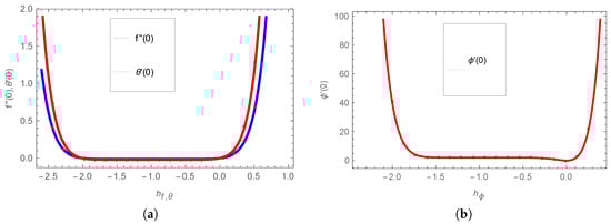 where the relation holds for all , together with and . The mapping defined by is known as a homotopic function in the literature. Equations (20)–(23) have been tackled by HAM. Solutions are restricted by a new parameter, ℏ, which modifies and links the solutions in an appropriate manner.