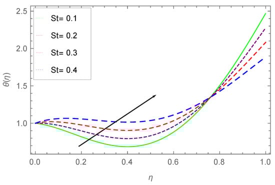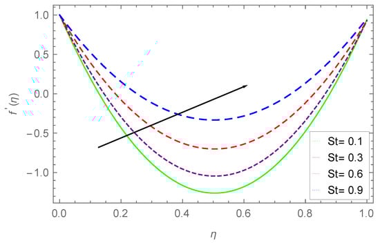 The objective of our investigation focuses on the interpretation of the thin film flow of nanoliquid flow parameters. Figure 2, Figure 3, Figure 4, Figure 5, Figure 6, Figure 7, Figure 8, Figure 9, Figure 10, Figure 11, Figure 12, Figure 13, Figure 14, Figure 15, Figure 16, Figure 17, Figure 18, Figure 19, Figure 20, Figure 21, Figure 22 and Figure 23 reveal the comprehension of the parameters involved in our model equations.