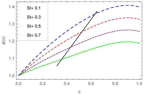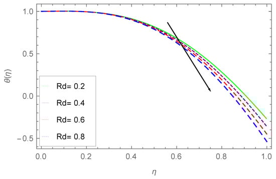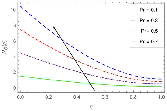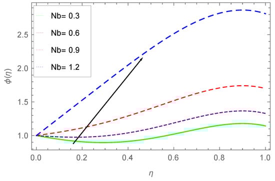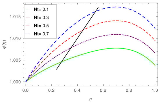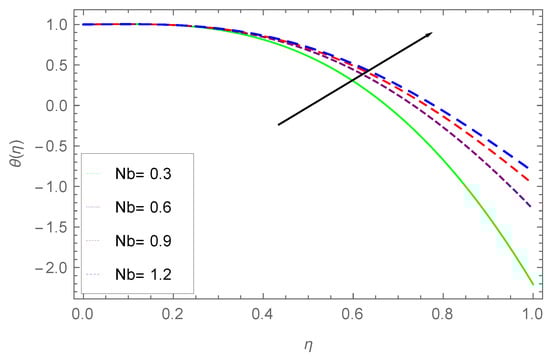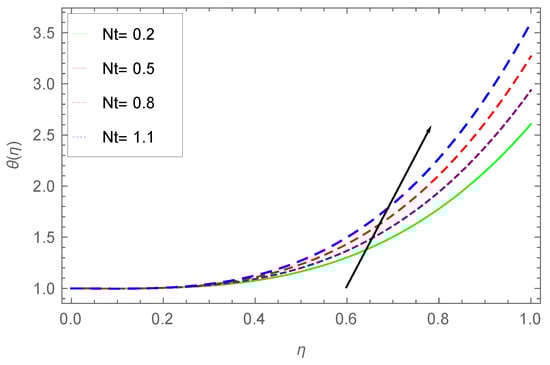 where T represents the temperature, illustrates the ratio of the base liquid to thermal capacities of nanoparticles, the heat capacitance of the liquid is represented by , represents the constant of Brownian diffusion, while demonstrates the constant of thermophoretic diffusion, denotes the liquid temperature, which is detached from the sheet.