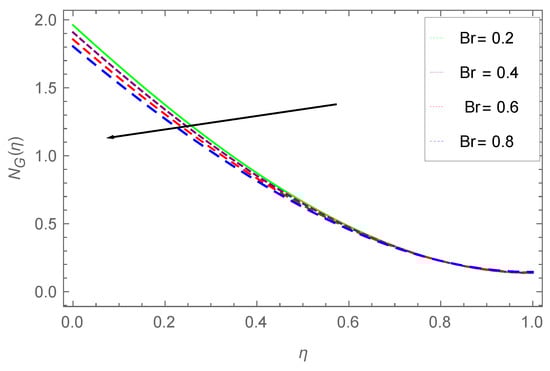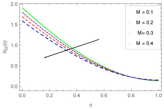 Equation (29) illustrates that the entropy generation has two main features, i.e., the irreversibility of the transmission of heat, and the fluid friction irreversibility. Magnetic and porosity effects are illustrated in the last two terms. The aspects of entropy generation are illustrated by mathematical description, given by