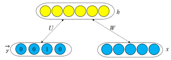 The DRBM is a variant of RBM with the difference that the DRBM adds a layer of category, tag y, connected to the hidden layer [13,14], as shown in Figure 4.