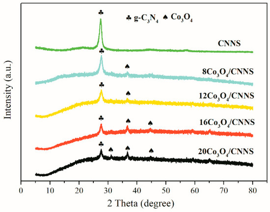 XRD patterns of pure and Co3O4-modified CNNS.