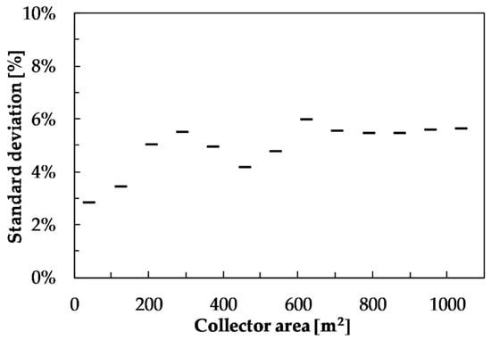 Figure 7 shows the standard deviation of the relative error between the proposed tool and TRNSYS as a function of the collector area, where the highest value was 6%.