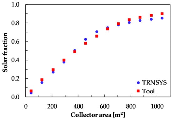 The solar fraction obtained with TRNSYS and the proposed tool.