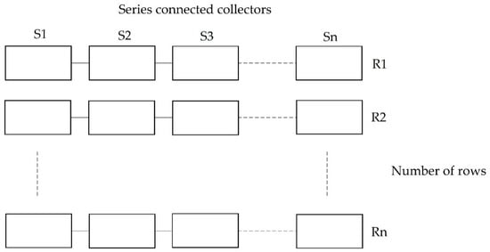 Once the optimal collector area was determined with the thermal analysis, the technical-economic optimization was carried out for the different series-parallel arrays. The costs of solar collectors, thermal storage, piping, and pumping power were taken into account. Figure 10 shows a schematic of a serial-parallel array.