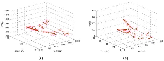 The PE mainly includes the emission from the consumption of electricity purchased from the external grid and the emission from consumption of natural gas. In this paper, the electricity purchasing from the external grid is assumed generated by coal-fired power stations. Three types of polluting gas are taken into account for consumption of coal and natural gas, i.e., CO2, SO2, and NOx, as shown in Table 3. Consequently, the objective function for PE is depicted in Equation (20):