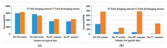 Comparison of total charging/discharging amount. (a) VESS of RFHCS; and (b) VESS of CHCS.