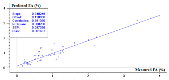 Validation of the 800–2200 PLS model for FA determination.