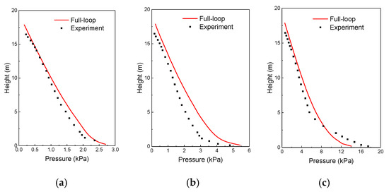 Figure 3 presents the time-averaged axial pressure profiles of the riser in the full-loop simulation and experiment. The pressure at the bottom of the riser is larger than that at the top, which pushes the gas and solids flow upward along riser. Pressure distributions in simulation agree well with that of the experiment in all operation conditions. The predicted pressure drop in the bottom of the riser was lower than the experimental data, which is possibly due to the fact that the Gidaspow drag model underestimated the solids volume fraction at the bottom of the riser.