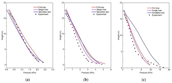 Figure 5 shows the comparison of pressure distribution in CFB between different simulations. The pressure in the simplified riser is reasonable at lower Gs, but quite different from that in the other two at Gs = 300 kg m
