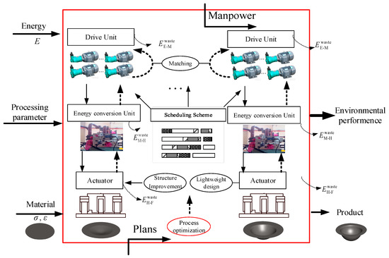 In a metal forming manufacturing system or a workshop, many presses are used for various manufacturing purposes. When the press is used in different processes, the energy consumption would be different. In addition, the corresponding energy efficiency and energy-saving methods vary in accordance with the level involved. Numerous studies have investigated the energy-efficient and energy-saving methods at different levels of the manufacturing system [17,18,19].