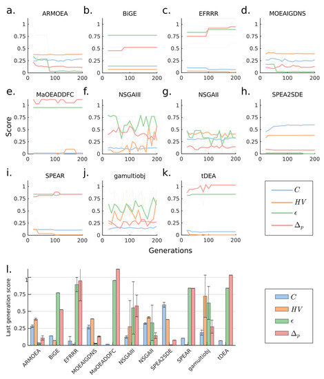 - Tian, Y.; Zhang, X.; Cheng, R.; Jin, Y. A multi-objective evolutionary algorithm based on an enhanced inverted generational distance metric. In Proceedings of the 2016 IEEE Congress on Evolutionary Computation (CEC), Vancouver, BC, Canada, 24–29 July 2016; pp. 5222–5229. [Google Scholar]