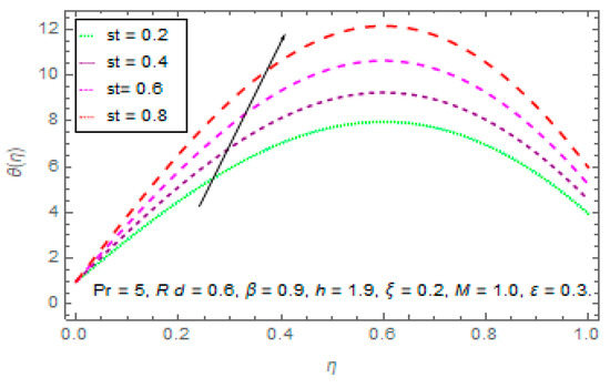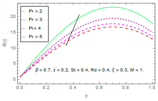 - The increasing values of Pr number, raising the temperature of the surface, also caused the surface temperature to fall down for large values of unsteady parameters.