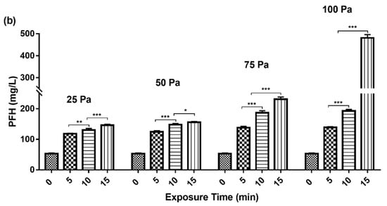 3.1. Variation of PFH Concentration with Gradient Change of Shear Stress and Exposure Time