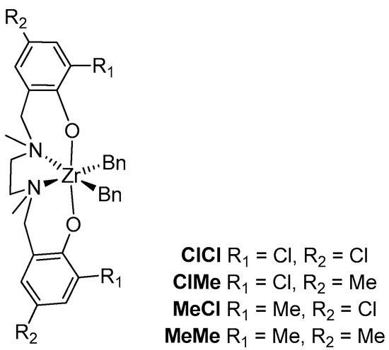 83. Ishii, A.; Ikuma, K.; Nakata, N.; Nakamura, K.; Kuribayashi, H.; Takaoki, K. Zirconium and Hafnium Complexes with Cycloheptane- or Cyclononane-Fused [OSSO]-Type Bis(phenolato) Ligands: Synthesis, Structure, and Highly Active 1-Hexene Polymerization and Ring-Size Effects of Fused Cycloalkanes on the Activity. Organometallics 2017, 36, 3954–3966. [Google Scholar] [CrossRef]