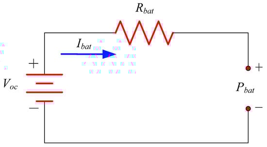 where Pbat denotes the battery load power, Ibat denotes the battery current, and Voc and Rbat denote the open-circuit voltage and the internal resistance of the battery, respectively.