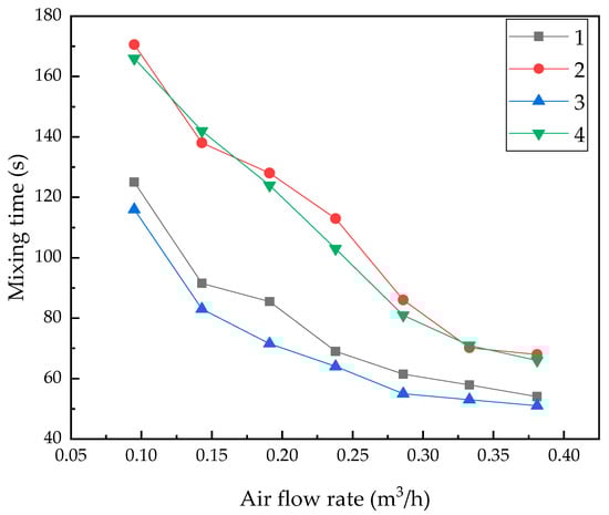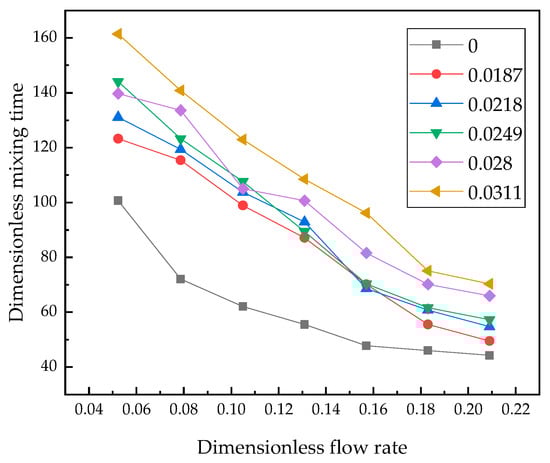 - The bath mixing in the ladle is affected by the number of porous plugs, flow rate and slag layer. Under the same blowing flow rate, the mixing time of double porous plugs is shorter than that of a single porous plug. The mixing time of the two methods eccentric blowing is basically the same, and the mixing time decreases with the increase of the blowing flow rate, and increases with the increase of the slag layer thickness. There is an inflection point in the mixing time curve, the flow rate at the point is 0.333 m3/h (corresponding 42 m3/h in prototype), the mixing time before the inflection point changes significantly, but after the inflection point, the mixing time changes slowly. The mixing time of the ladle without the slag layer is significantly shorter than that with the slag layer.