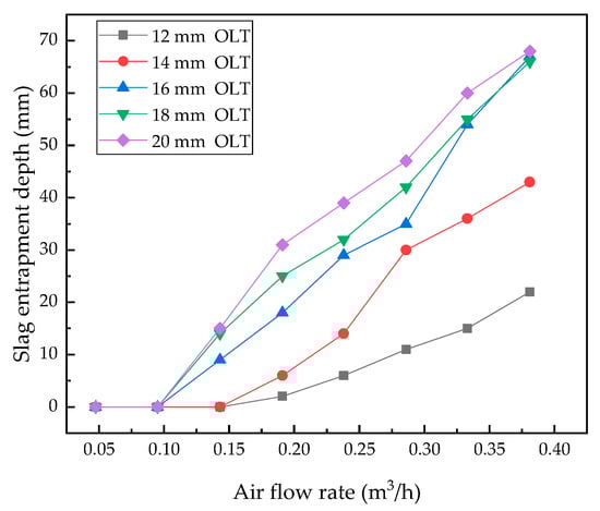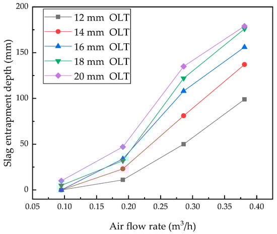 - The entrapped slag depth increases with the argon flow rate and slag thickness; the area of slag eyes increases with the argon flow rate and decreases with slag thickness.