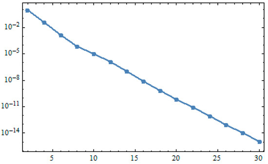 Error decay for the 10th-order approximation.