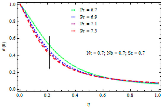 The impact of the Pr parameter on the heat transfer rate.