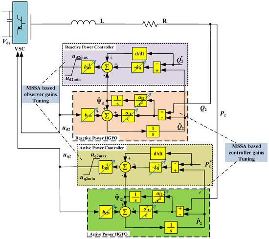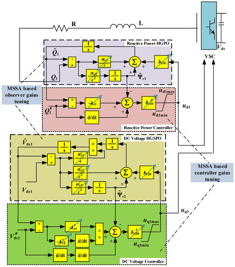 The controller gains in Equations (19), (25), (29), and (35) and observer gains in Equations (23)–(24) and (33)–(34) are optimally tuned through MSSA under reactive power and active power regulation.