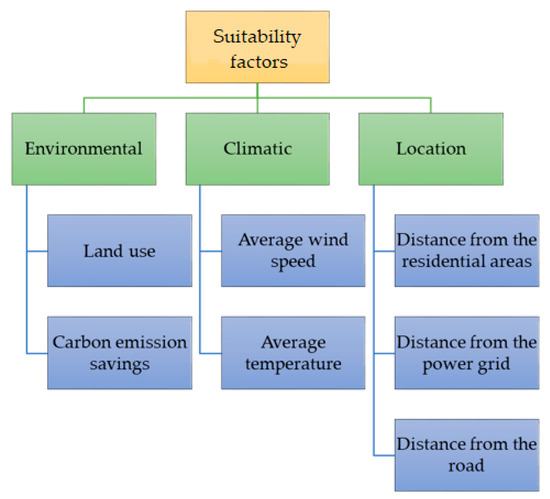 - The suitability factor weights were determined using the Analytic Hierarchy Process (AHP). The details about the calculation are given in the next section.