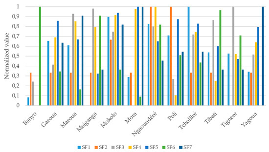 - The normalized values SFij were obtained from the values of suitability factors using the following normalization formulas [49]:for criteria of maximum,for criteria of minimum.