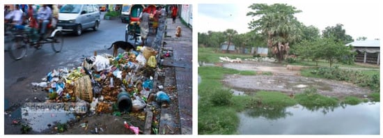 Roadside waste dumping in Dhaka (left) and dumping of poultry litter adjacent to water courses (right) [31]. (Reproduced with permission from Gofran, 2009).